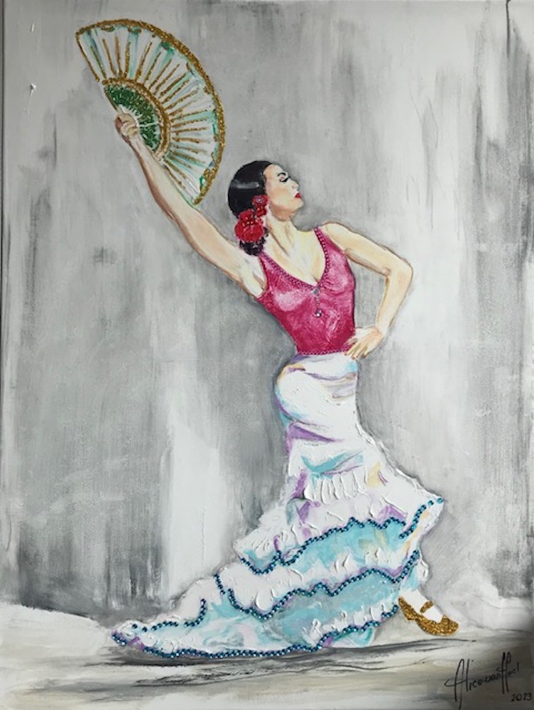Alice schildert portretten en (Venetiaanse) maskers. Ze heeft interesse in mensen uitbeelden en hen te beschilderen (bodypainting). Ook schildert zij clowneske figuren die zij vervolgens versiert met verschillende materialen.